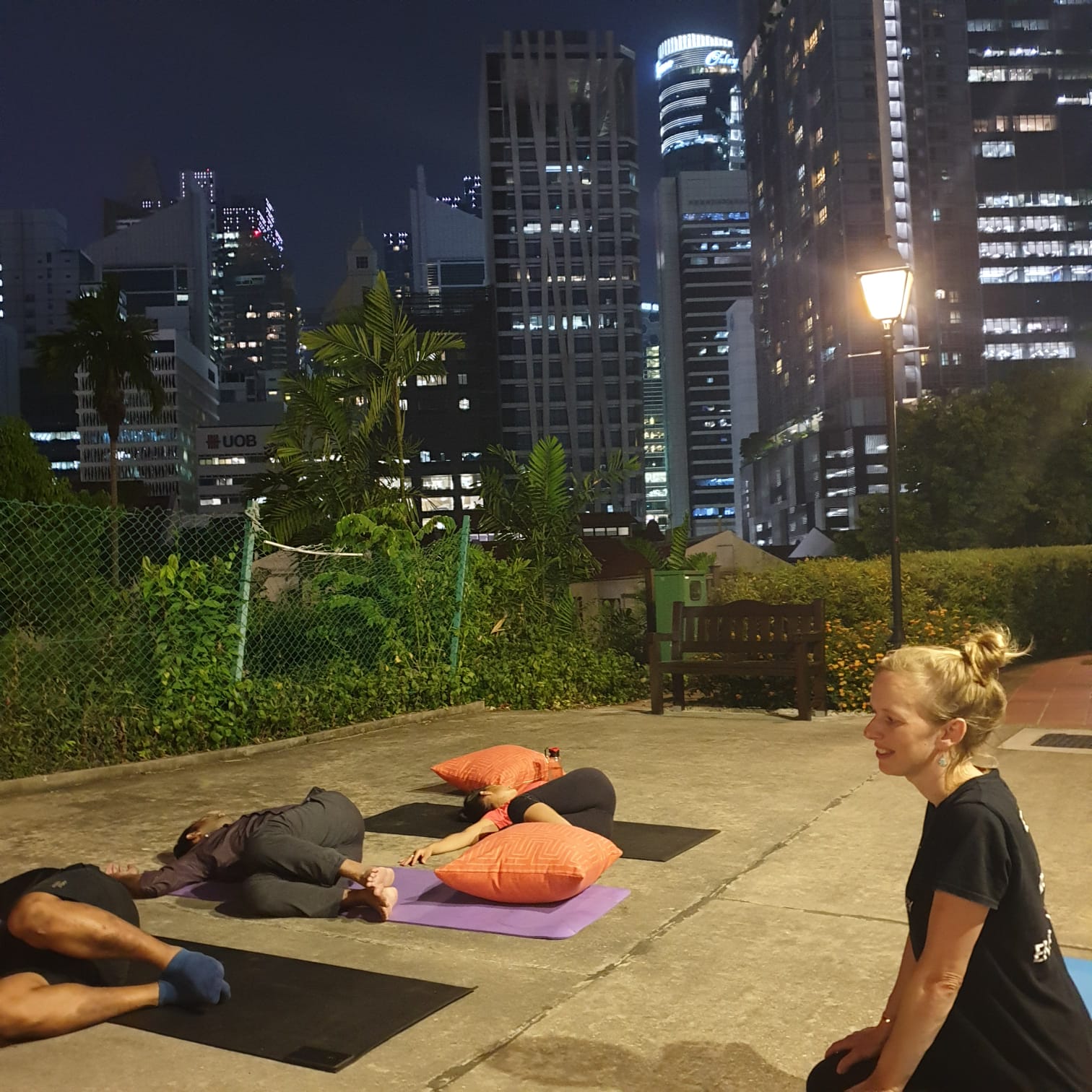 Facilitating a session about mental health and teaching yoga, Singapore.